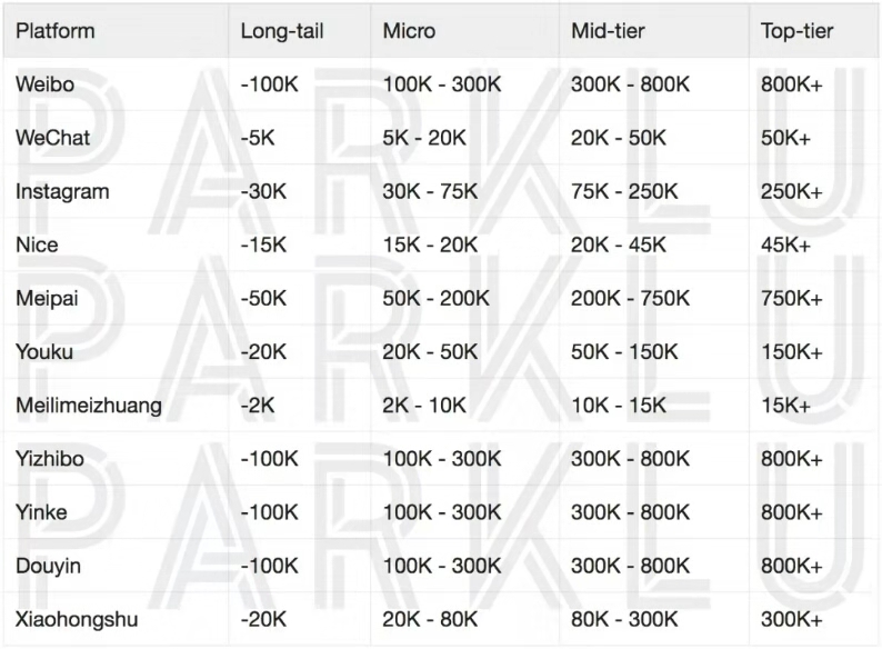 为此,PARKLU 的建议是:确定你要合作的博主的粉丝规模,衡量品牌目前在中国市场的知名度。